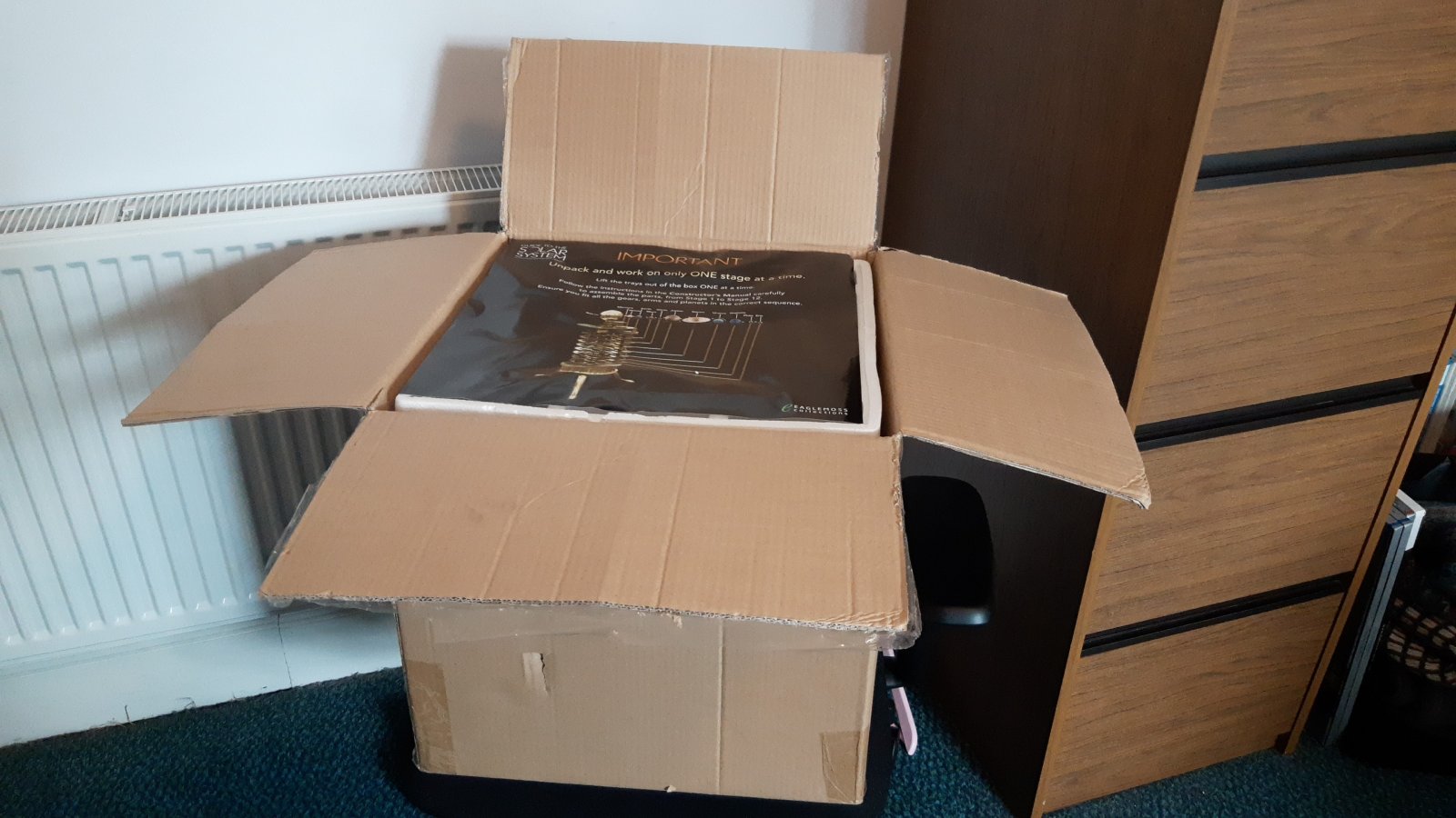 Delivery box of Eaglemoss orrery 11th April 2026 1600 × 900 Delivery box of Eaglemoss orrery Click to enlarge Click here to register a like anonymously: 👍0 (Be the first) Delivery box of Eaglemoss orrery